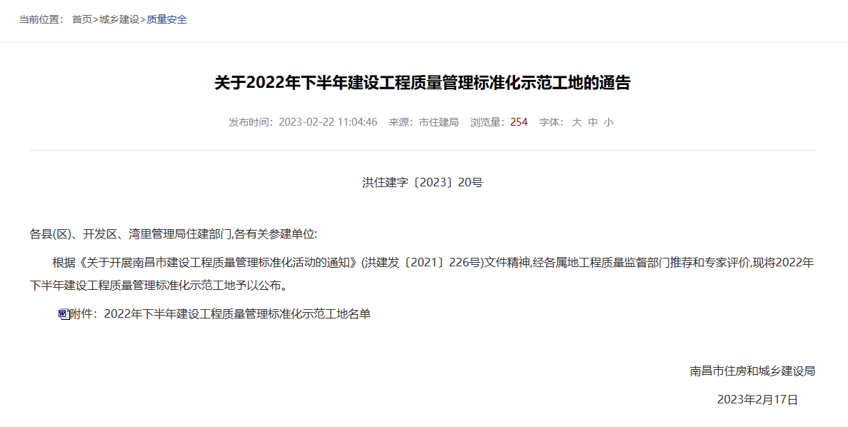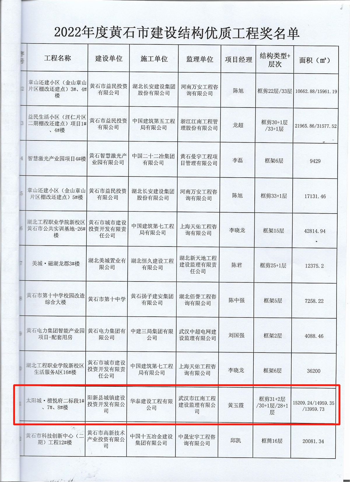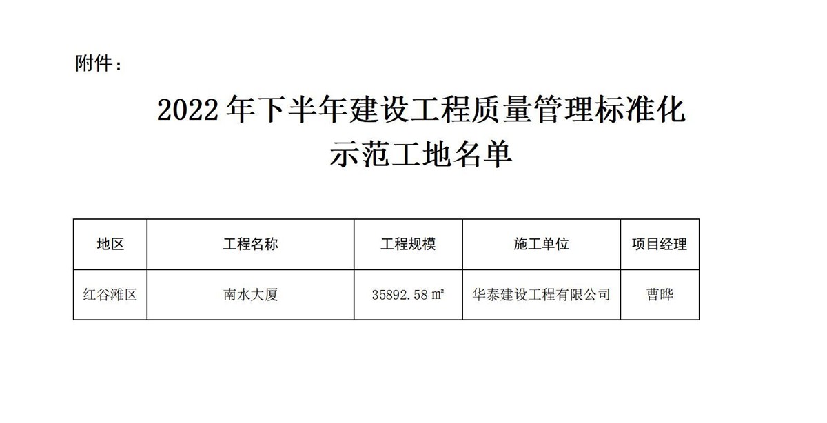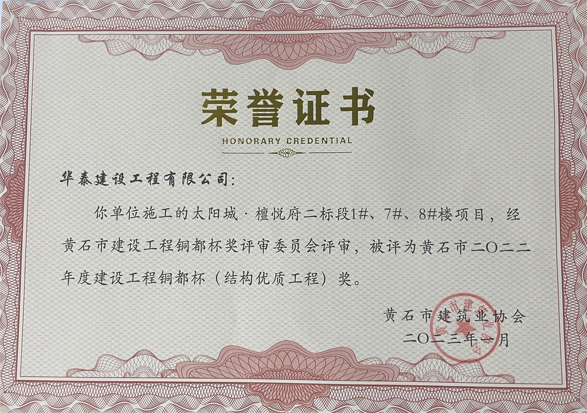 近日,在南昌市住房和城鄉(xiāng)建設(shè)局發(fā)布的《關(guān)于2022年下半年建設(shè)工程質(zhì)量管理標(biāo)準(zhǔn)化示范工地的通告》、黃石市建筑業(yè)協(xié)會(huì)發(fā)布的《關(guān)于授予2022年度黃石市建設(shè)結(jié)構(gòu)優(yōu)質(zhì)工程獎(jiǎng)項(xiàng)目的通知》中,經(jīng)各屬地工程質(zhì)量監(jiān)督部門推薦和專家評(píng)價(jià),由華泰建設(shè)工程有限公司承建的“南水大廈”項(xiàng)目與“太陽(yáng)城·檀悅府二標(biāo)段1#、7#、8#樓”項(xiàng)目分別榮獲南昌市“2022年下半年建設(shè)工程質(zhì)量管理標(biāo)準(zhǔn)化示范工地”、“黃石市2022年度建設(shè)工程銅都杯(結(jié)構(gòu)優(yōu)質(zhì)工程)獎(jiǎng)”。建設(shè)工程質(zhì)量標(biāo)準(zhǔn)化示范工地評(píng)比是考核參建單位質(zhì)量管理水平的重要標(biāo)準(zhǔn)之一,同時(shí),建設(shè)工程銅都杯(結(jié)構(gòu)優(yōu)質(zhì)工程獎(jiǎng))代表了建筑工程結(jié)構(gòu)施工質(zhì)量的高水平,也是精品工程的重要標(biāo)志。獲此兩項(xiàng)殊榮,是對(duì)華泰建設(shè)項(xiàng)目施工水平及安全質(zhì)量管理的充分肯定,彰顯了華泰建設(shè)在工程項(xiàng)目管理、工程品質(zhì)等領(lǐng)域的卓越實(shí)力。